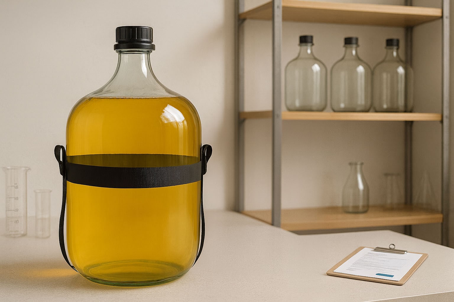 De Ballonfles „High End“ combineert eersteklas vakmanschap met maximale veiligheid en functionaliteit. Met haar royale inhoud van 25 liter biedt zij een ideale oplossing voor het opslaan en vervoeren van gevoelige vloeistoffen. Haar ronde vorm zorgt voor een gelijkmatige verdeling van de inhoud, terwijl de valbeschermingsverpakking met UN-goedkeuring voldoet aan de hoogste veiligheidsnormen. De zwarte originaliteitsafsluiting garandeert een betrouwbare verzegeling en beschermt tegen onbevoegde toegang. Daarnaast zorgen 48 mm brede textielbanden met kunststof draaggrepen voor comfortabel hanteren, zelfs bij volle belading. Perfect voor het veilig bewaren en vervoeren van sterke dranken, chemicaliën of andere gevoelige vloeistoffen – de Ballonfles „High End“ stelt nieuwe maatstaven in kwaliteit en veiligheid.