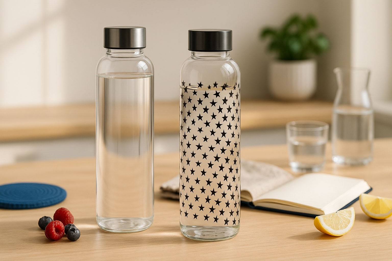 De Perseus-serie van CARRY combineert topkwaliteit met stijlvol design en is de perfecte keuze voor iedereen die duurzaamheid en esthetiek in het dagelijks leven waardeert. Gemaakt in Duitsland, overtuigt deze duurzame glazen drinkfles door zijn slanke, cilindervormige ontwerp en nauwkeurige afwerking. De praktische schroefdop zorgt voor een veilige afsluiting – bijpassende deksels zijn verkrijgbaar in ons assortiment. Geïnspireerd door moderne kunst en natuurlijke elementen, biedt Perseus een selectie unieke motieven zoals delicate paarse bloemen, stijlvolle zwarte stippen en dynamische turquoise driehoeken. Met zijn tijdloze elegantie en duurzame productie zet de Perseus-serie een duidelijk signaal voor bewust consumeren en individueel design.