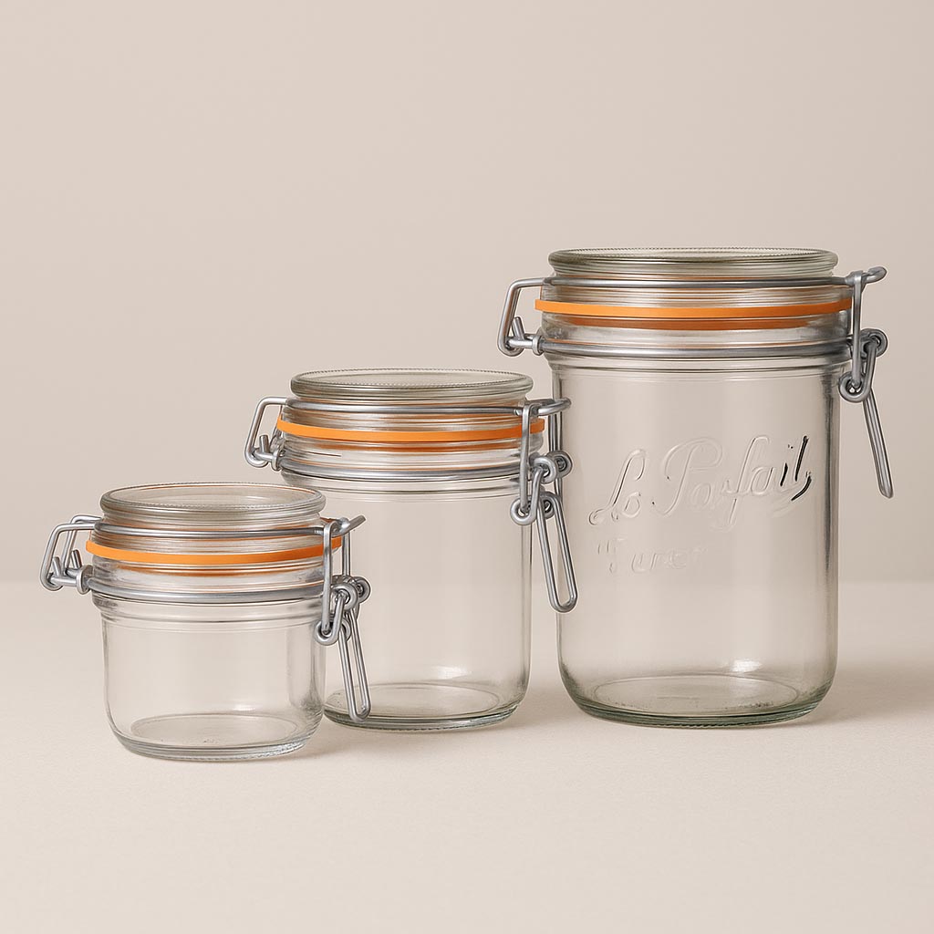 La série « Super Terrine » de Le Parfait incarne l’authentique savoir-faire français et offre une solution de haute qualité pour la conservation et la présentation des aliments. Ce bocal classique à fermeture par pince avec le relief « Le Parfait Super » a été spécialement conçu comme bocal à retourner, permettant un démoulage facile des gâteaux, tartes et autres desserts. Il est également idéal pour les confitures, conserves de charcuterie et de viande ainsi qu’une grande variété de délicieuses tartinades. Avec une capacité allant de 125 à 1000 ml, « Super Terrine » offre de nombreuses possibilités d’utilisation. Le couvercle en verre fourni ainsi que le joint en caoutchouc orange caractéristique assurent une fermeture hermétique et sécurisée.