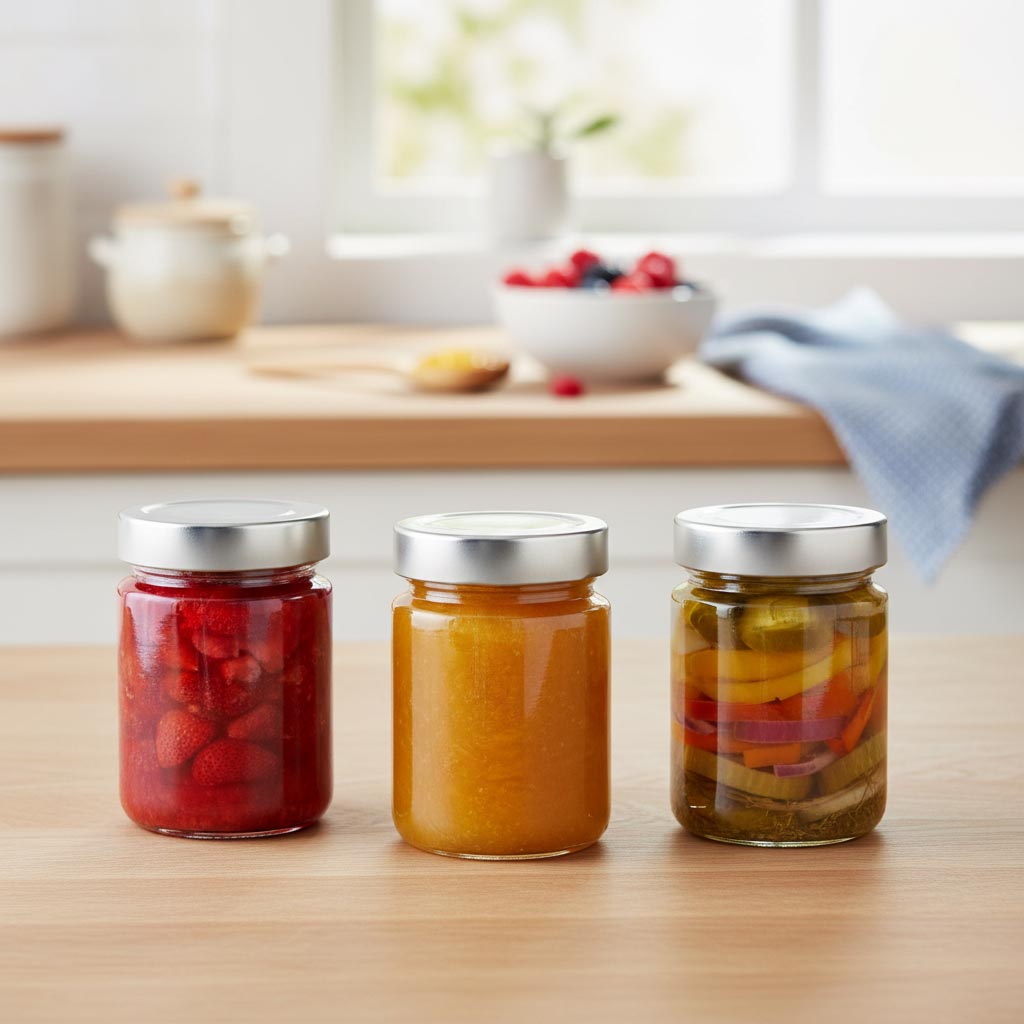 La série de produits « Verre rond Deep Twist Off » de Flaschenland comprend des contenants en verre de haute qualité, spécialement conçus pour des usages polyvalents de stockage et de conservation. La caractéristique principale de cette série est le col innovant Deep-Twist-Off (DTO 58), qui garantit une manipulation sûre et facile. Les verres ronds « Summertime » de 253 ml se distinguent par la robustesse et la durabilité de leur matériau. Ils sont résistants au froid, à la chaleur, compatibles micro-ondes et four, ce qui les rend extrêmement polyvalents. De plus, ils passent au lave-vaisselle, assurant un nettoyage facile. Le verre clair permet une présentation attrayante du contenu, tandis que la forme ronde offre un espace de rangement optimal.
