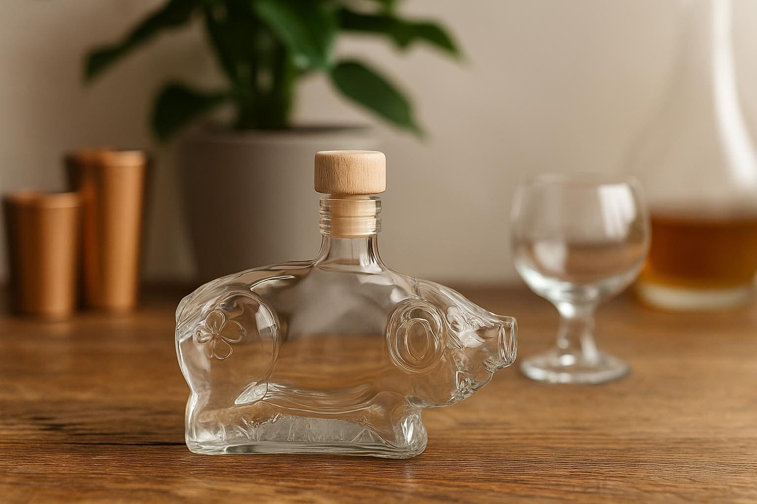 Nos nombreuses bouteilles spéciales telles que "Eva" et "Adam", « Cochon porte-bonheur », "Sapin" et « Bonhomme en pain d'épice » incarnent une élégance intemporelle et établissent des standards en matière de qualité et de design. Chaque bouteille se distingue par un motif caractéristique, souvent conçu avec soin, et une finition de haute qualité qui séduit tant les professionnels que les particuliers sensibles à l’esthétique. Les contenants sont disponibles en différentes tailles, de 40 ml à 500 ml, et offrent avec un bouchon en liège, en PP ou un fermoir à levier une solution élégante pour le stockage sécurisé et hermétique des spiritueux, liqueurs et autres boissons.