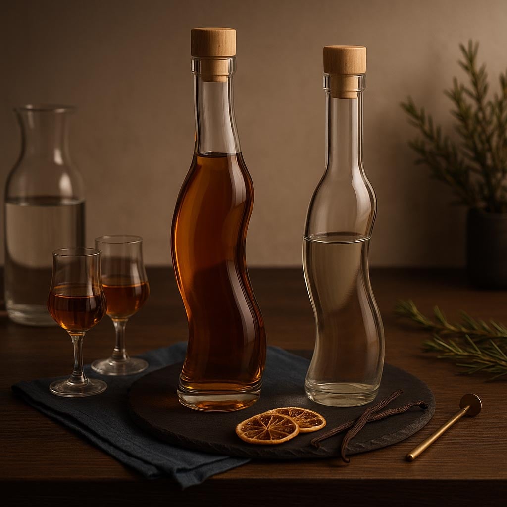 La série La-Ola allie une esthétique exceptionnelle à une fonctionnalité optimale et offre une solution d’emballage exclusive pour les liqueurs fines, les spiritueux d’exception et d’autres spécialités délicates. La forme courbée de cette bouteille en verre transparent rappelle les mouvements doux des vagues et lui confère une apparence unique et dynamique. Avec une base semi-circulaire, La-Ola se distingue des formes classiques de bouteilles et apporte une touche élégante. Disponible en formats de 350 et 500 ml, elle offre suffisamment d’espace pour des contenus de haute qualité. Le goulot en liège garantit une fermeture traditionnelle et sécurisée – des bouchons adaptés sont disponibles dans notre assortiment. La-Ola incarne l’élégance, le mouvement et une présentation raffinée de moments de dégustation précieux.