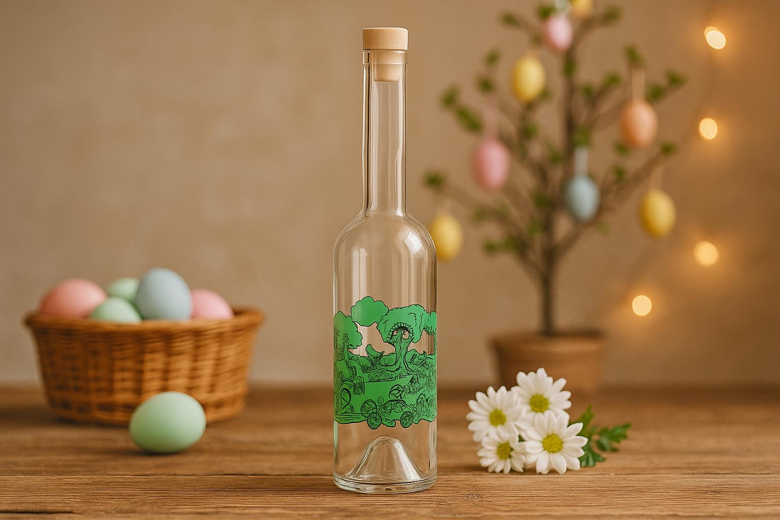 Bouteilles et bocaux Bouteille en verre 500 ml 'Opera', motif : joyeuses Pâques, bouchage: bouchon