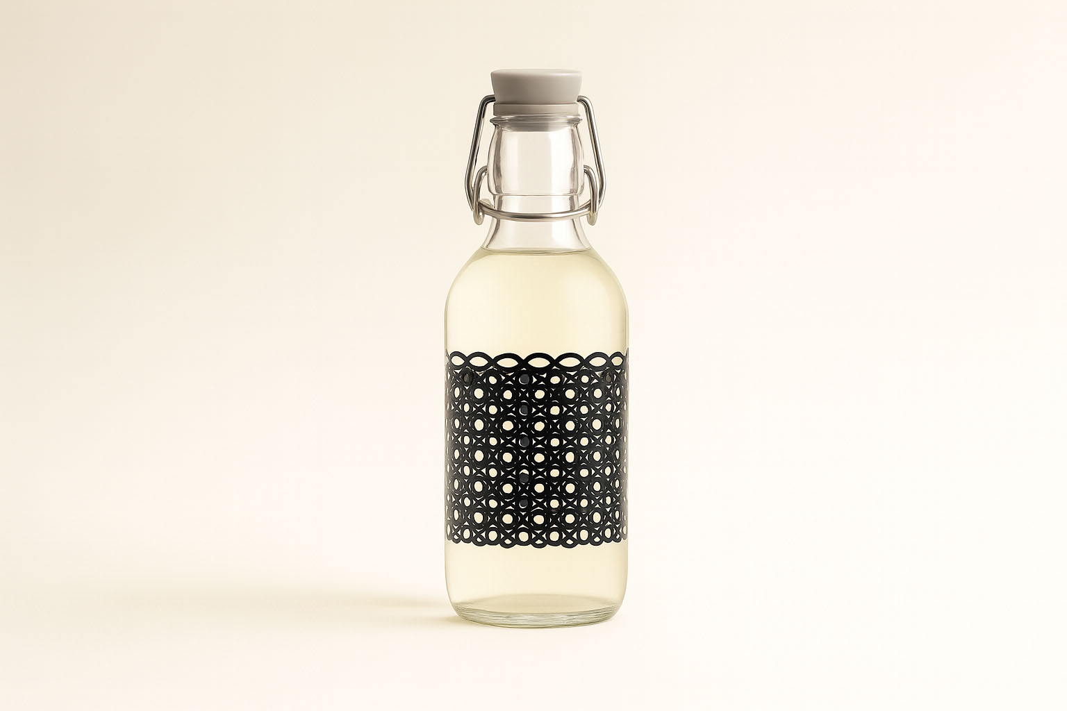 Bormioli Rocco Glazen fles 'Emilia', 500 ml, motief: Circola nero, monding: beugelsluiting