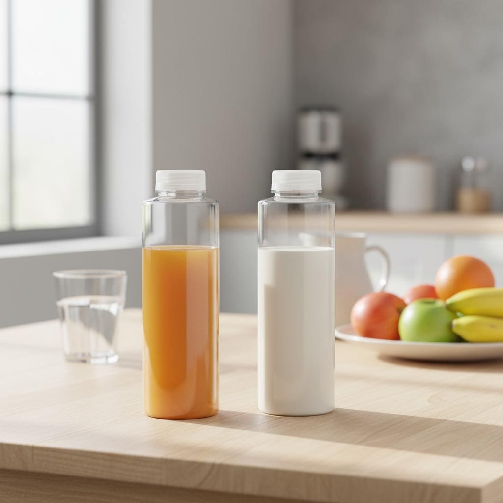 De productserie „PET Weithals“ van Flaschenland omvat hoogwaardige kunststofhouders die speciaal zijn ontwikkeld voor veelzijdige afvullingen. Het belangrijkste kenmerk van deze serie is de praktische brede halsopening met een diameter van 38 mm, die eenvoudig vullen en reinigen mogelijk maakt. De 500 ml PET-fles „Everytime“ onderscheidt zich door het robuuste, voedselveilige kunststofmateriaal dat een veilige opslag van vloeistoffen zoals melk, sap en water garandeert. Dankzij het transparante ontwerp behoudt u te allen tijde het overzicht van het vulniveau. Het compacte formaat van 500 ml maakt de fles bijzonder handzaam en ideaal voor dagelijks gebruik. De ronde vorm van de houder zorgt voor een aangename haptiek.