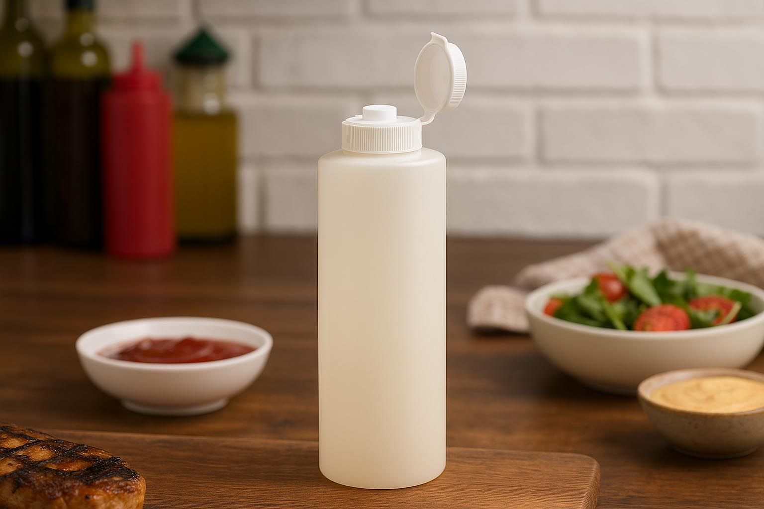De sausfles combineert functioneel design met hoge gebruiksvriendelijkheid en is de ideale oplossing voor het gericht doseren van hartige en zoete sauzen, dressings en andere vloeibare specialiteiten. Gemaakt van flexibel LDPE-kunststof, maakt de cilindrische fles een moeiteloze en gecontroleerde toepassing mogelijk. Dankzij de praktische -38/400-opening kan deze optimaal worden aangepast met verschillende functionele sluitingen uit ons assortiment. Verkrijgbaar in de kleuren wit, rood en naturel, past de sausfles harmonieus in elke keuken- of horecagelegenheid.