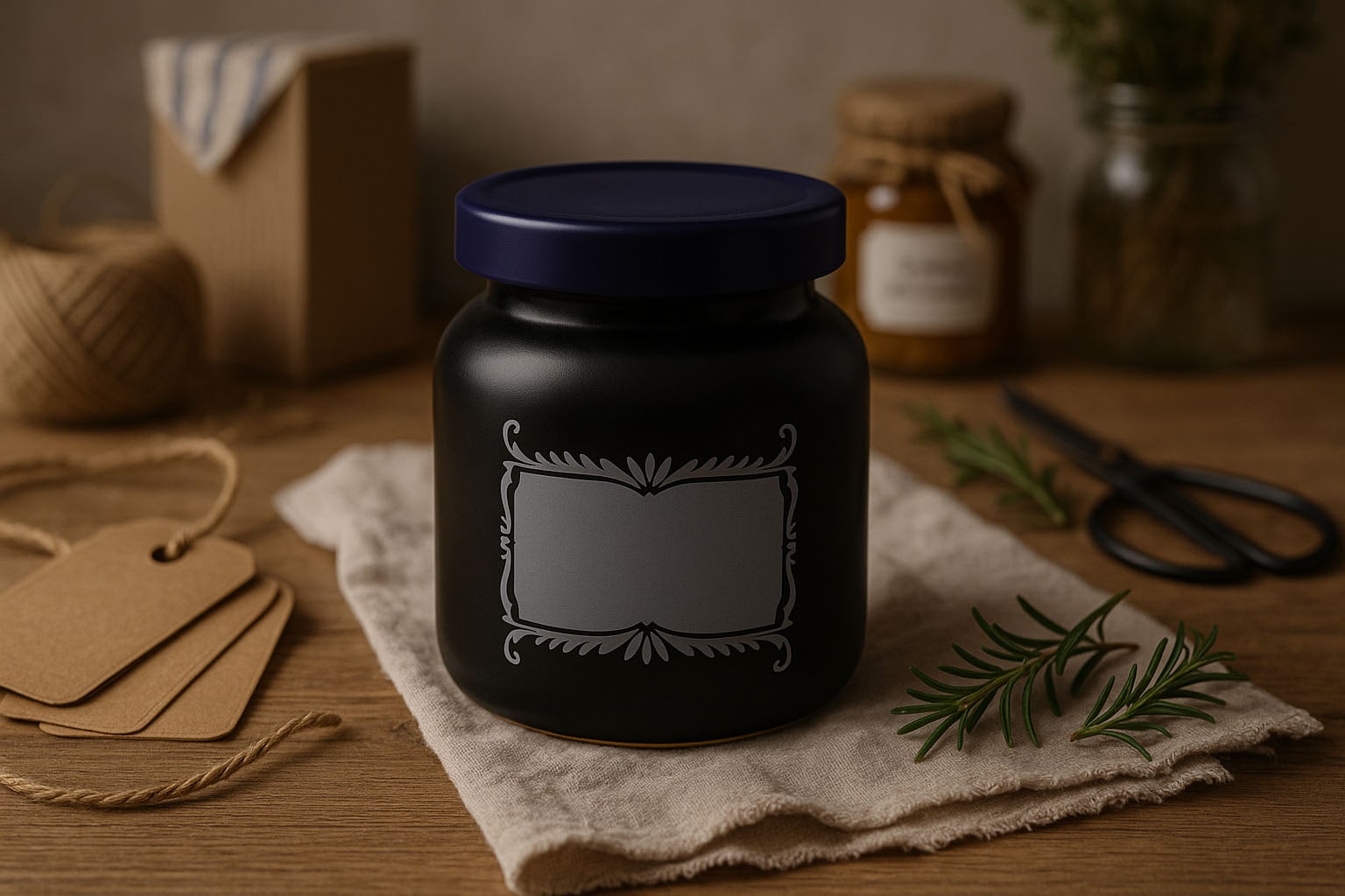 Flessenland Steengoed pot, 270 ml, motief: etiketveld, keramiek, zwart, monding: stulpdeksel