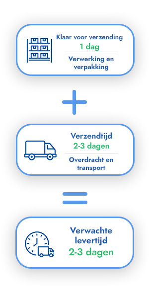 *Geldig voor bestellingen tot 12:00 uur (ma-do) en bij directe betaalmethode. In metropoolregio's bedraagt de levertijd 1 werkdag. In andere regio's kan de levering tot 2 werkdagen langer duren.